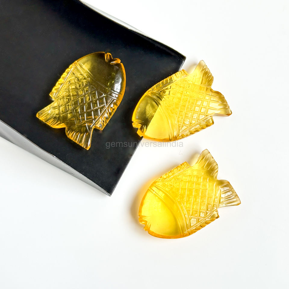 ควอตซ์เลมอนธรรมชาติแกะสลักรูปปลา