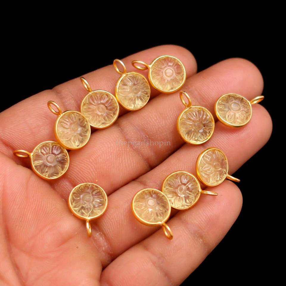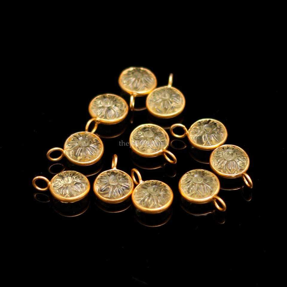 Natural Lemon Quartz Round Shape Flower Carved Gemstone Pendant