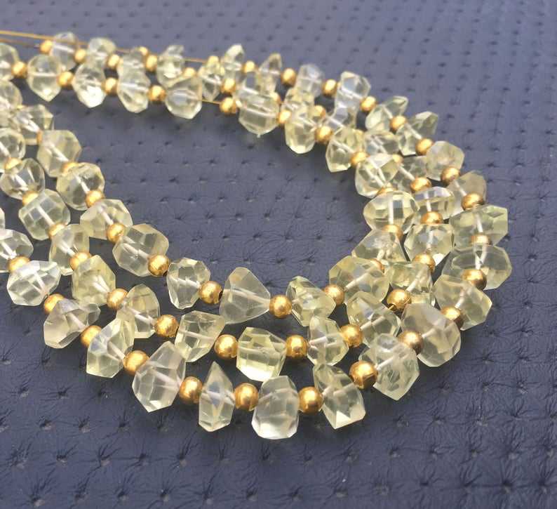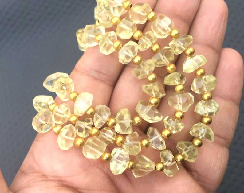 หินควอตซ์ธรรมชาติเลมอน22ชิ้นลูกปัดรูปร่างนักเก็ตเหลี่ยมเพชรพลอยสำหรับทำเครื่องประดับทำด้วยมือเครื่องประดับหินควอทซ์สวยงาม