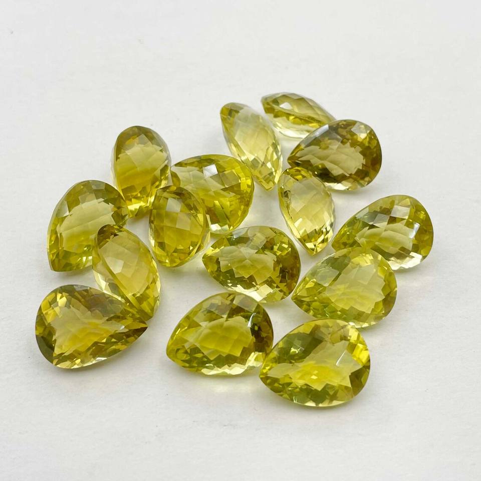 พลอยเลมอนควอตซ์ทรงลูกแพร์ธรรมชาติ หินหลวมสีเหลือง สำหรับทำเครื่องประดับ ได้รับการรับรองจาก IGI ผ่านการเคลือบแว็กซ์/น้ำมัน Coszcatl Exports