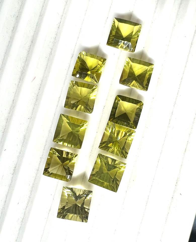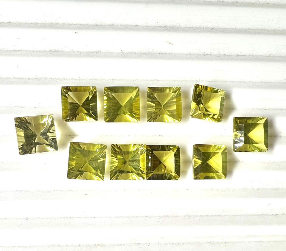 พลอยเลมอนควอตซ์ทรงเหลี่ยมตัดเว้า9มม. ทรงสี่เหลี่ยมสำหรับตัดมะนาวสีเหลือง