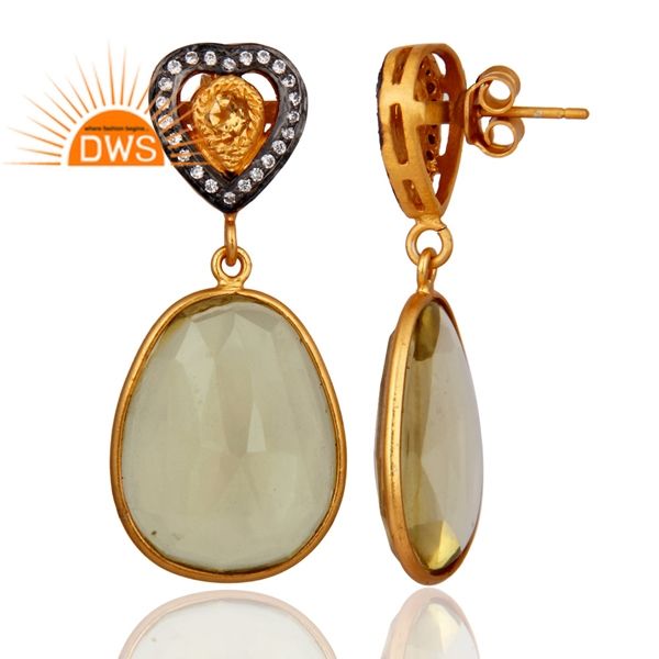 ต่างหูพลอยเลมอนโทปาซธรรมชาติ เงินแท้ ชุบทอง 18k แบบห้อยระย้า ประดับเพชร CZ จากผู้ผลิตเครื่องประดับ