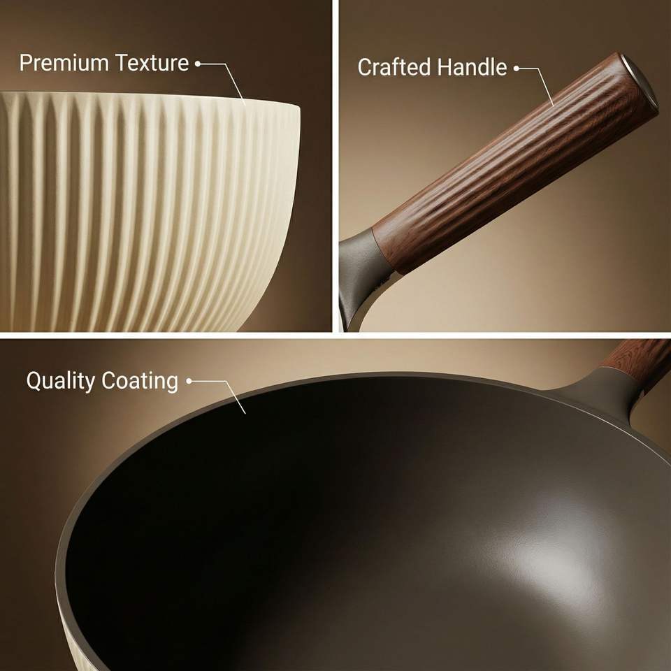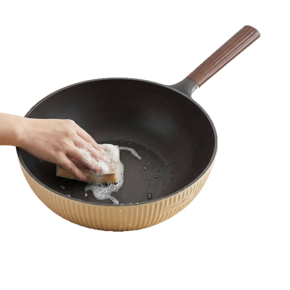 กระทะเคลือบเซรามิก Natural Life ขนาด 32 ซม. ก้นแบน ไม่ติดกระทะ สำหรับการทำอาหารเพื่อสุขภาพ พร้อมด้ามจับไม้