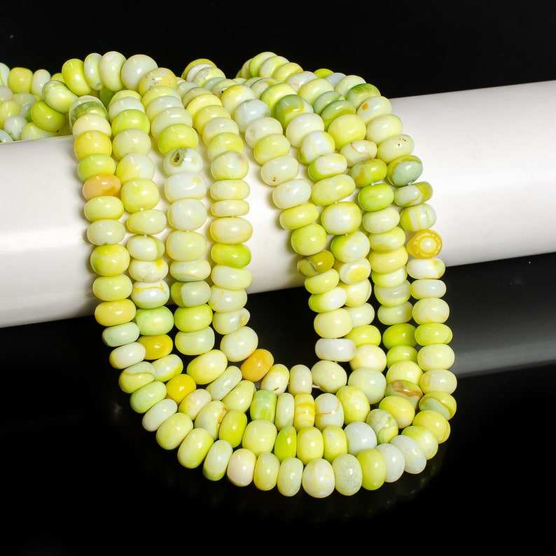 Natural Light Green Opal Smooth Rondelle Beads 7-8mm Opal Stone Loose Gemstone Beads for Jewelry Making at Wholesale Price