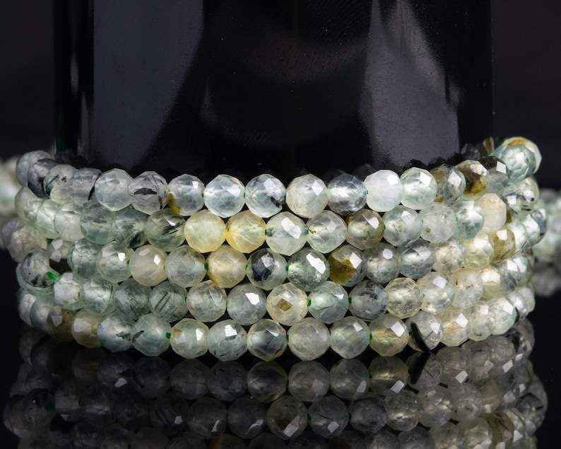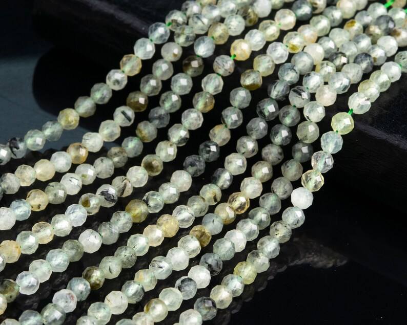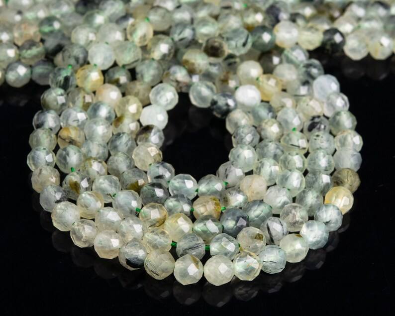 พลอยพรีไนต์สีเขียวธรรมชาติทรงกลมเจียระไนเม็ดเดี่ยวสำหรับทำเครื่องประดับ สร้อยข้อมือ สร้อยคอ งานฝีมือ DIY