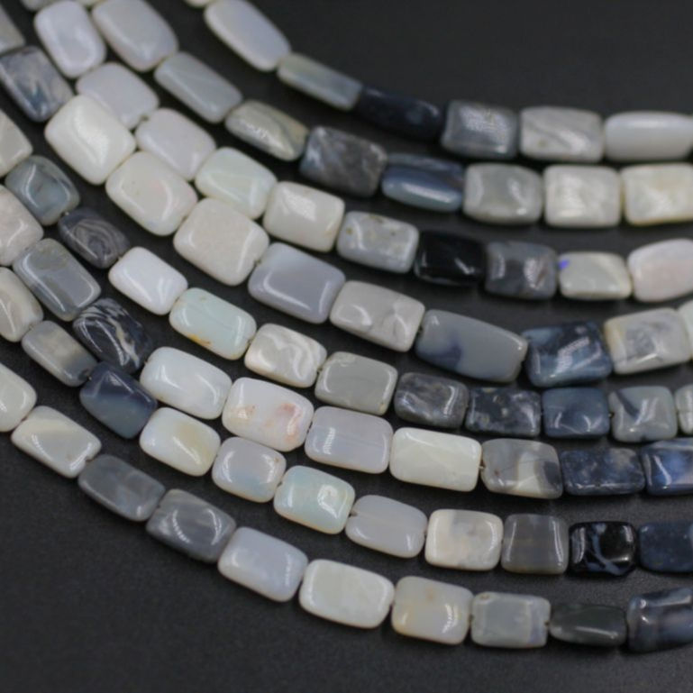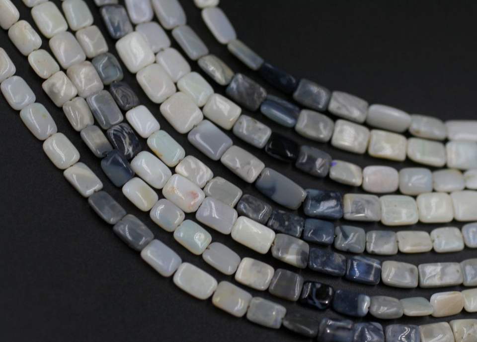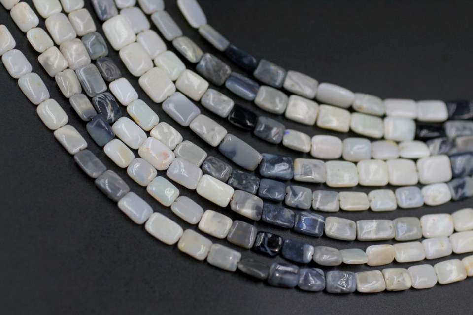 ลูกปัดหินเหลี่ยมเพชรพลอยธรรมชาติสีดำโอปอลจากออสเตรเลียขนาด8นิ้วลูกปัดหิน6X9MM แบบหลวมเรียบ