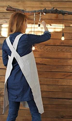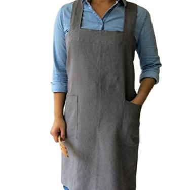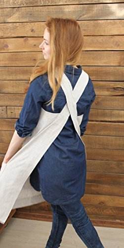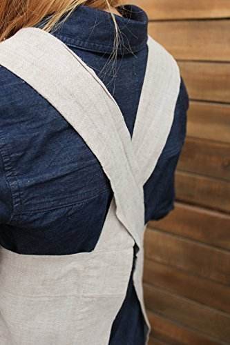 ผ้ากันเปื้อนสไตล์ญี่ปุ่นแบบไขว้ ไม่ต้องผูก สีธรรมชาติ พร้อมกระเป๋าสองข้าง