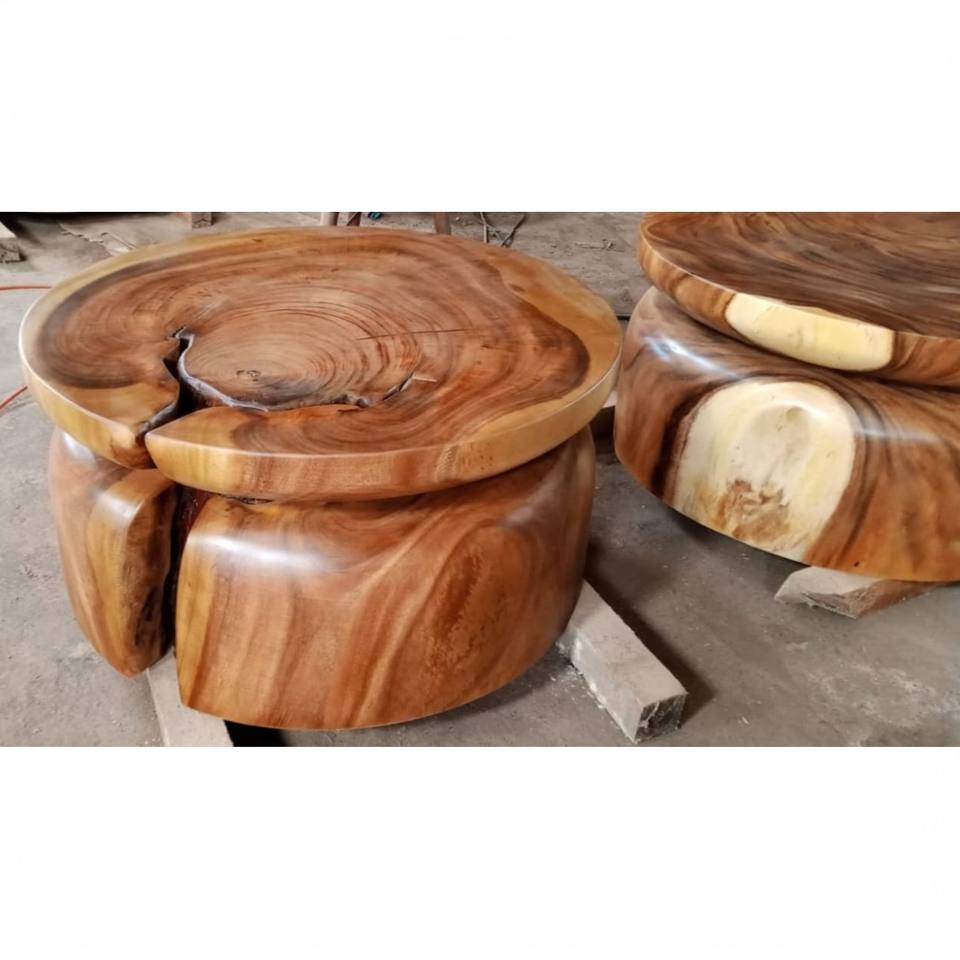 ชื่อผลิตภัณฑ์:โต๊ะกาแฟดรัมตอขนาด80ซม. ทำจากไม้ชิ้นเดียวแข็ง