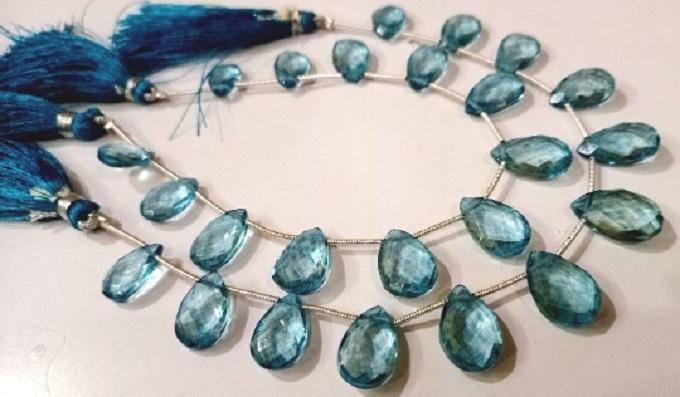 บุษราคัมสีฟ้าลอนดอนธรรมชาติขนาด8x13 10x15มม. ลูกปัดพลอยรูปทรงลูกแพร์เจียระไนคริสตัลยาว8นิ้ว
