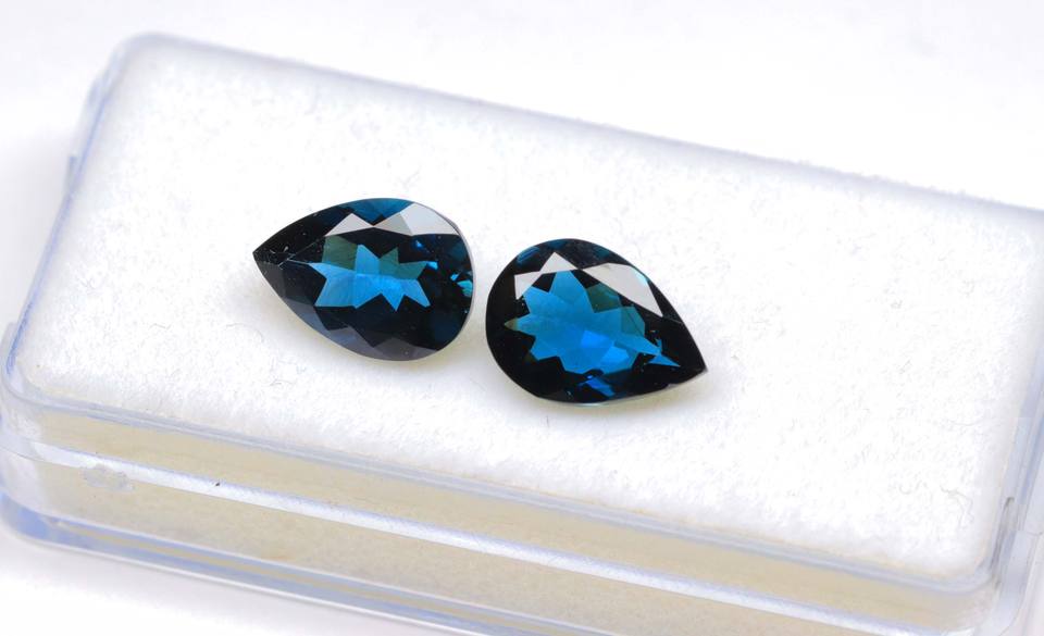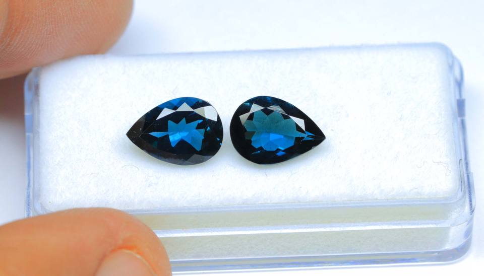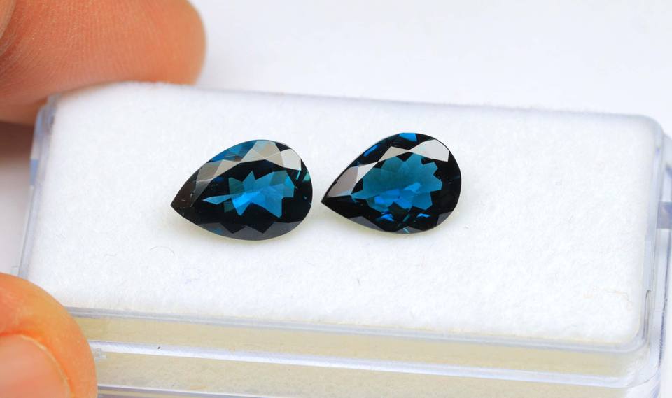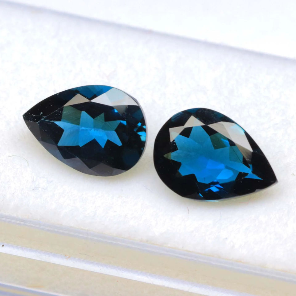 งดงามลอนดอนสีฟ้าบุษราคัมพลอยสังเคราะห์สีฟ้าบุษราคัมรูปร่างลูกแพร์ตัดเหลี่ยมเพชรพลอยกรุงลอนดอน
