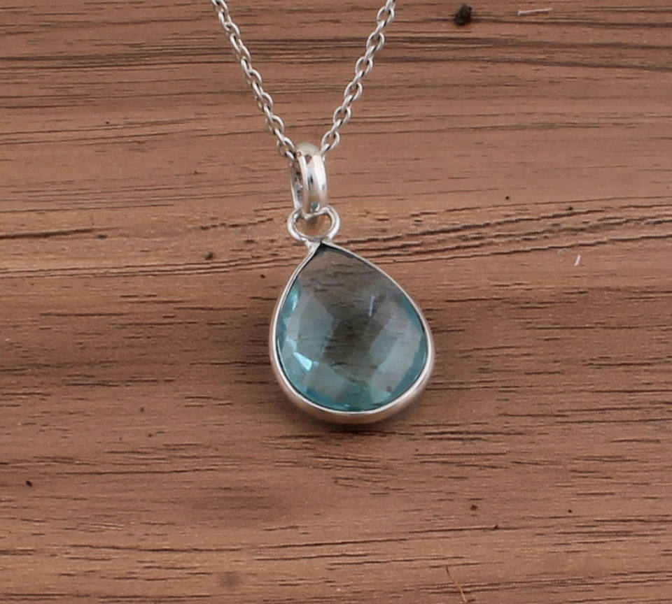 จี้โทแพซสีน้ำเงินลอนดอนธรรมชาติ เงินแท้ 925 ชุบแพลตตินัมสไตล์วินเทจ ขายส่ง สร้อยคอสำหรับทุกเพศ หินประจำเดือนธันวาคม