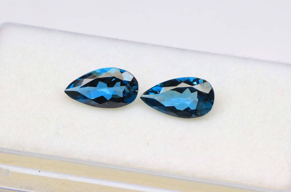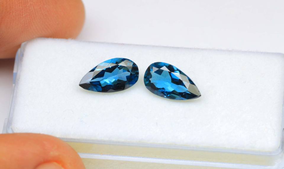 หินโทแพซคริสตัลสีฟ้าธรรมชาติลอนดอนพลอยเจียระไนแบบลูกแพร์ที่ยอดเยี่ยมในรูปทรงที่ดีที่สุดสำหรับการทำเครื่องประดับเป็นคู่