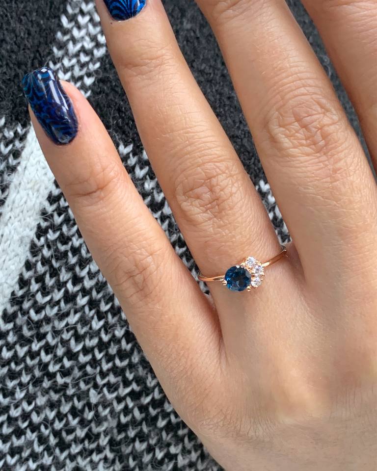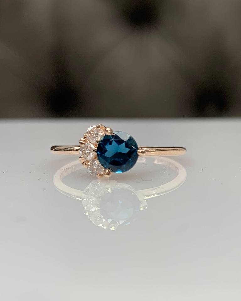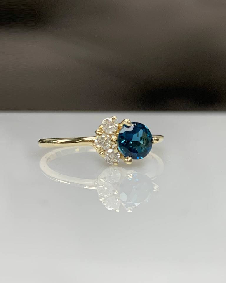 Keyword:Blue Topaz 14K Solid Gold Ring Radiant Spark Shine Dainty Statement