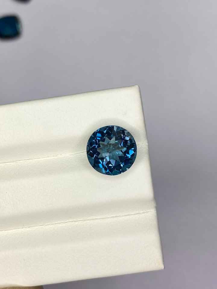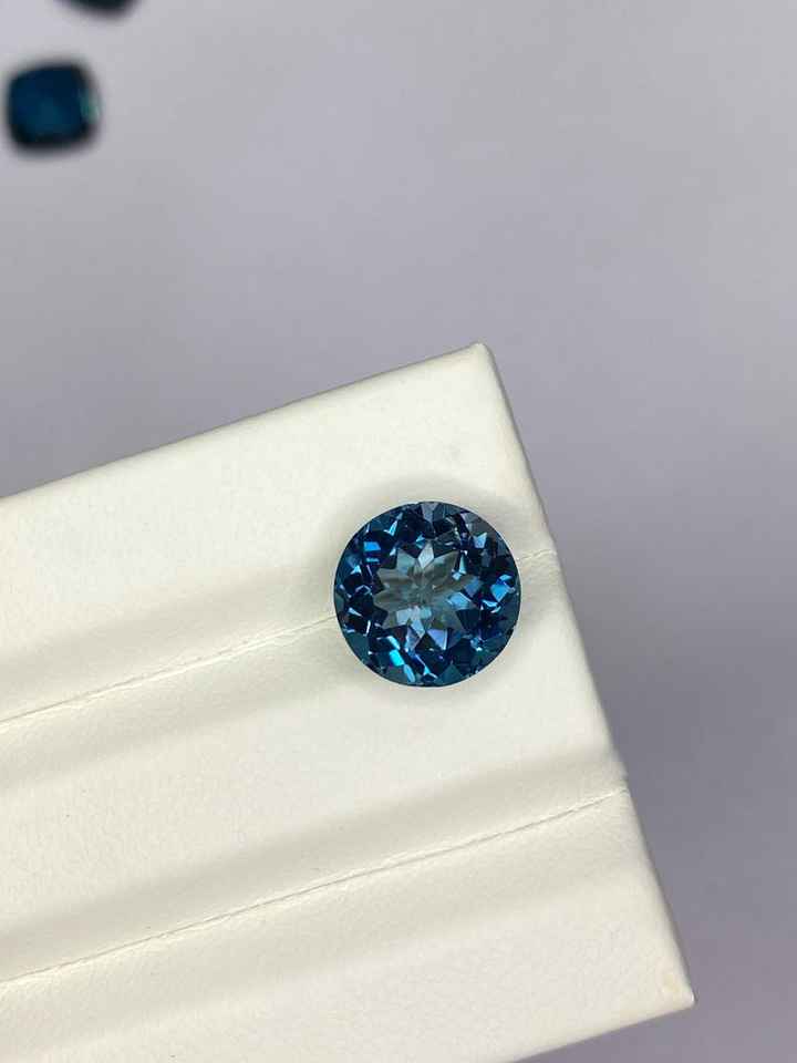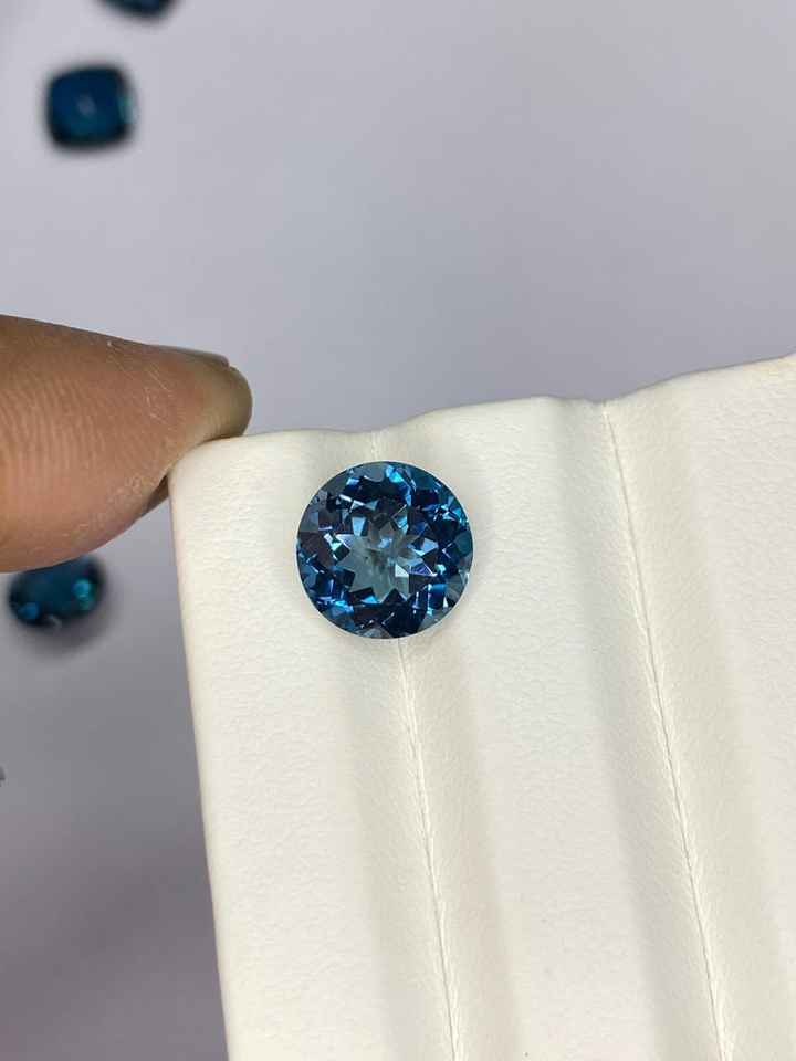 พลอยโทแพซสีน้ำเงินลอนดอนธรรมชาติ ทรงกลมเจียระไนเหลี่ยม ขนาด 5 มม. ถึง 10 มม. สำหรับทำเครื่องประดับ