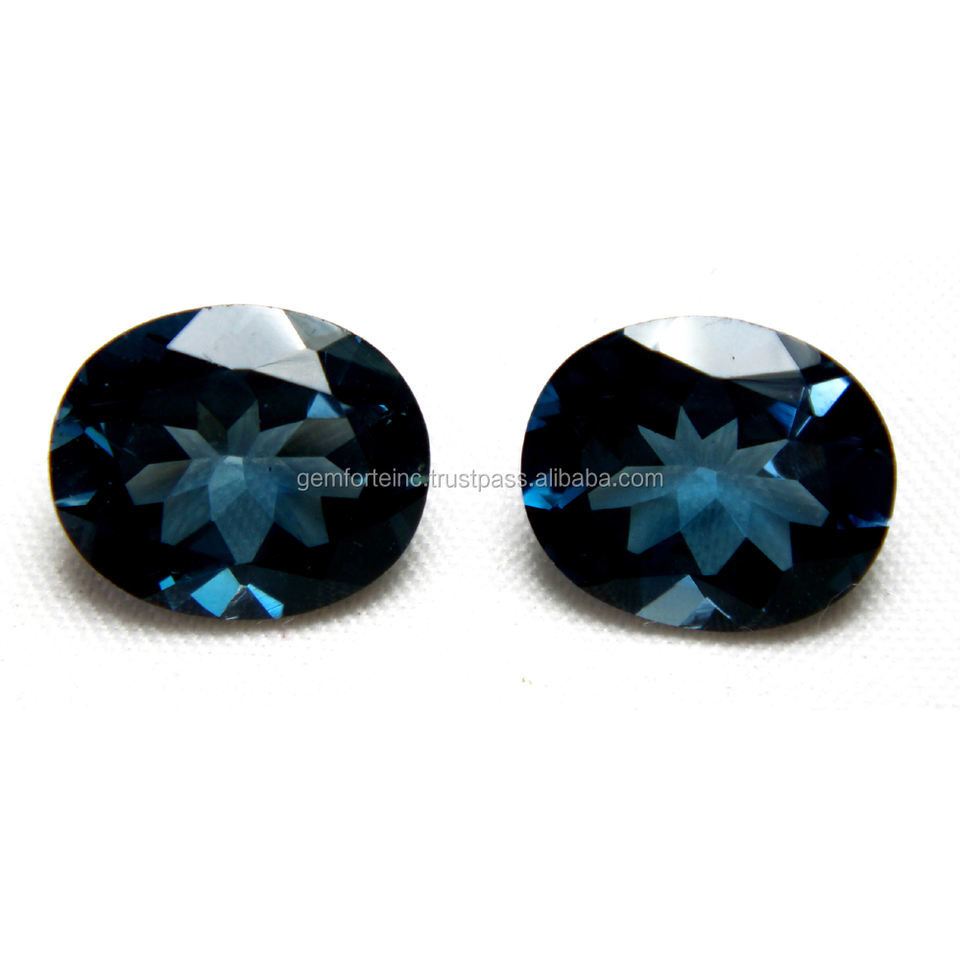 สร้อยคอแหวนทรงวงรีขนาดใหญ่ทรงรีขนาด9x7มม. ธรรมชาติลอนดอนบลูโทแพซทำจากหินบำบัดล้ำค่า