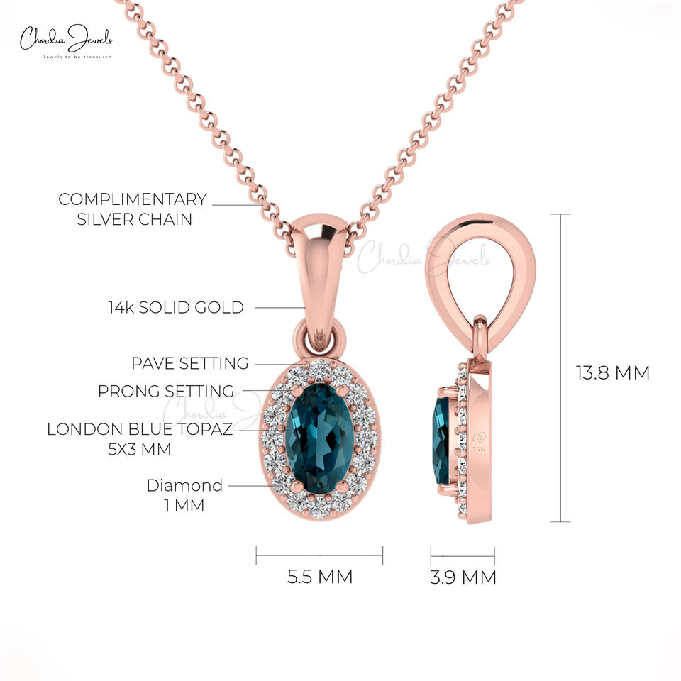จี้บุษราคัมสีฟ้าลอนดอนธรรมชาติ,จี้เพชรสีทอง14K เครื่องประดับบุษราคัม5X3mm จี้รูปไข่จากอินเดีย