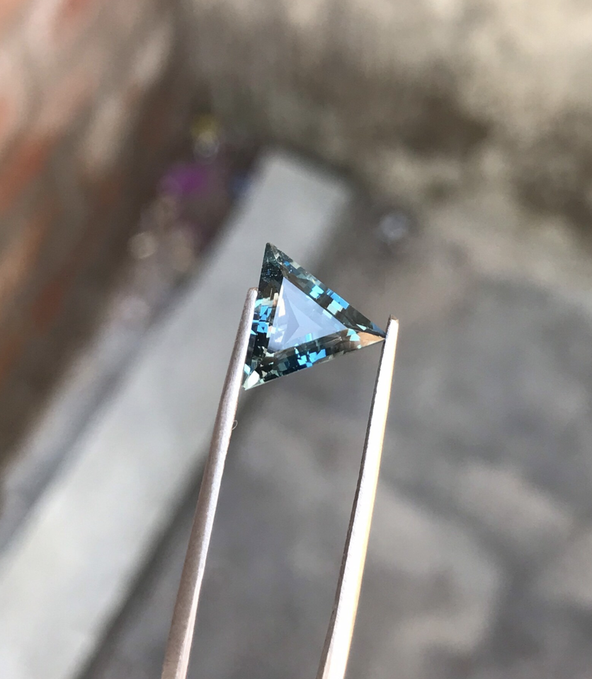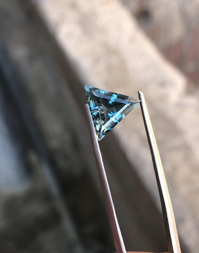 พลอยโทแพซสีฟ้าธรรมชาติลอนดอนสีน้ำเงินทรงสามเหลี่ยมเจียระไนเจียระไนได้รับการรับรองสำหรับการทำเครื่องประดับขนาด3มม. 4มม. 5มม. 6มม. 7มม. 8มม. 10มม.