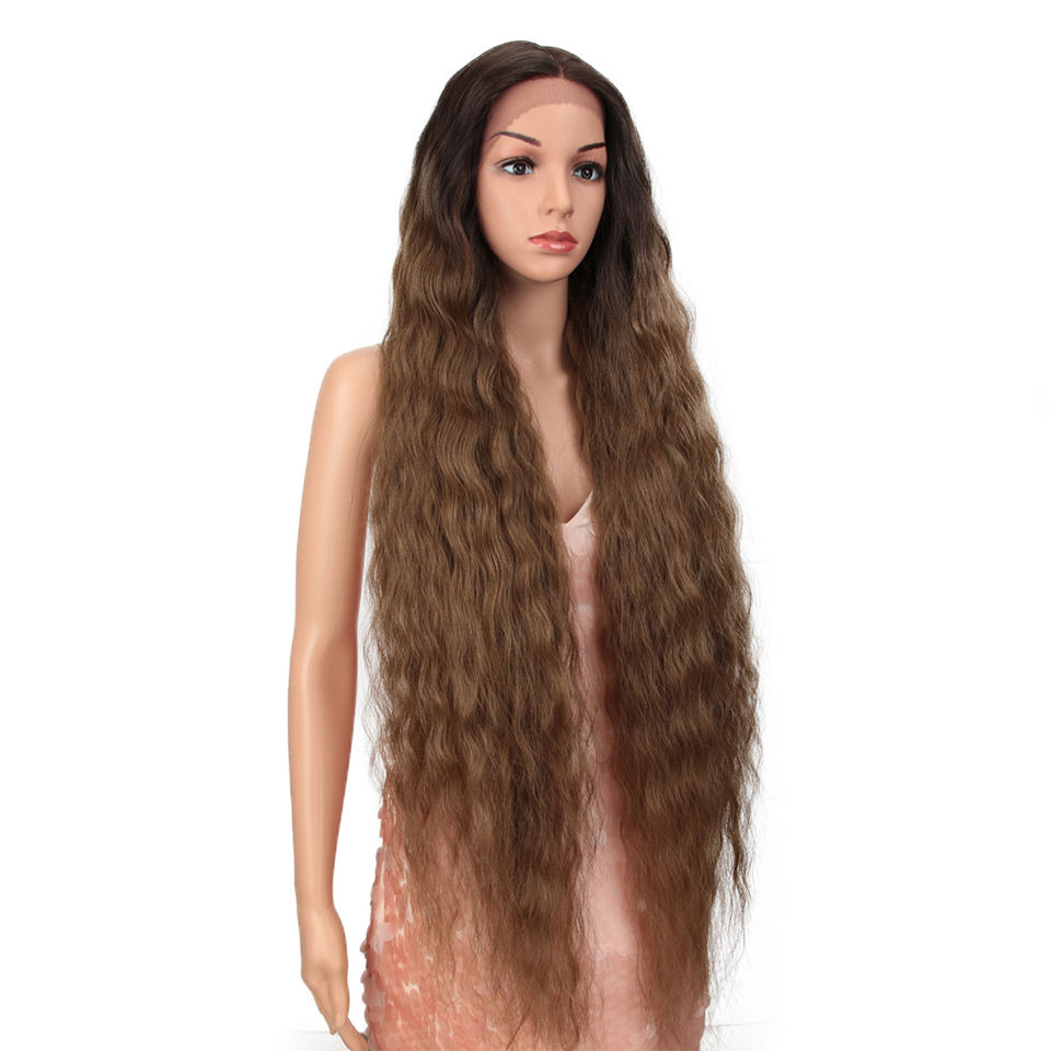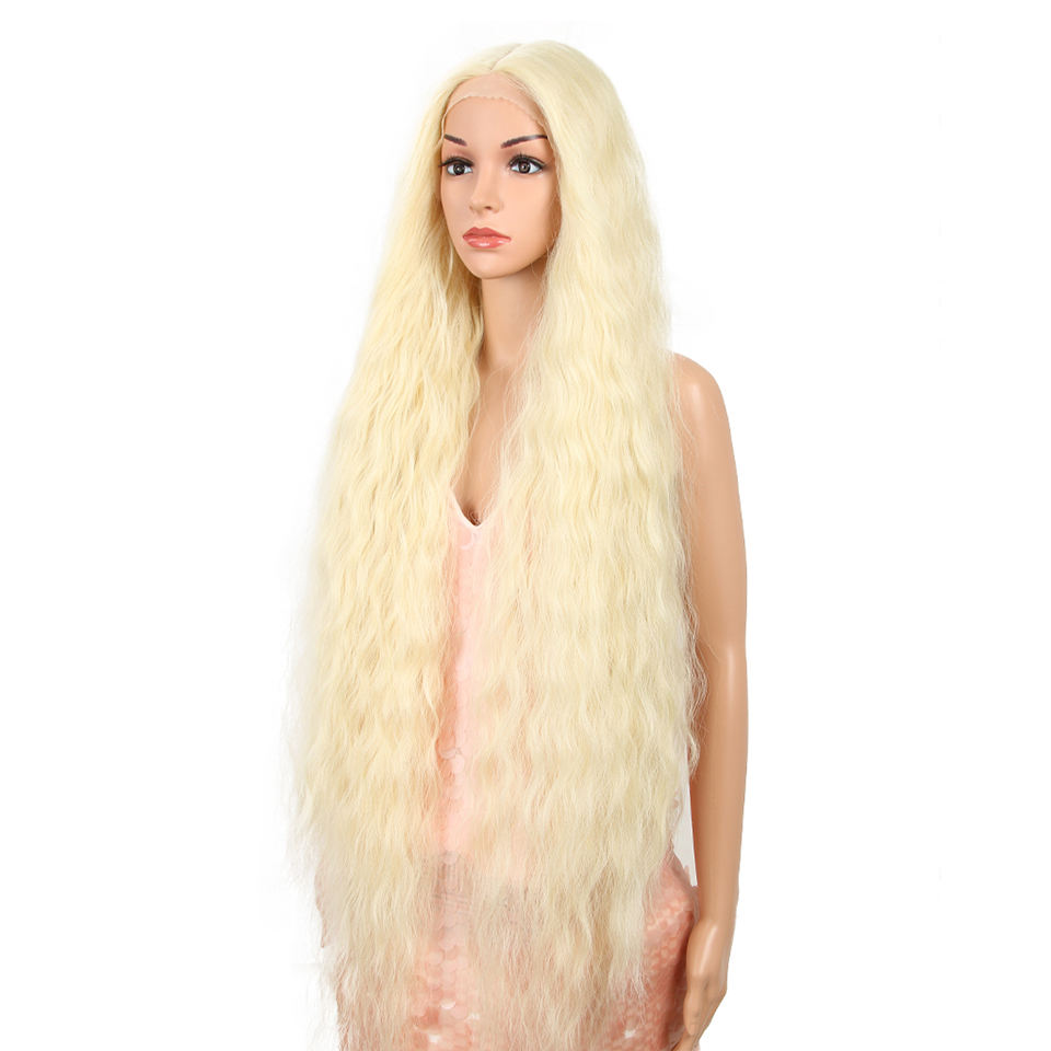 วิกผมหน้าผากลูกไม้สีบลอนด์ออมเบรแบบยาวธรรมชาติ 42 นิ้ว สำหรับคอสเพลย์ พร้อมผมเบบี้แฮร์ สำหรับผู้หญิงผิวสี วิกผมหน้าผากลูกไม้สังเคราะห์