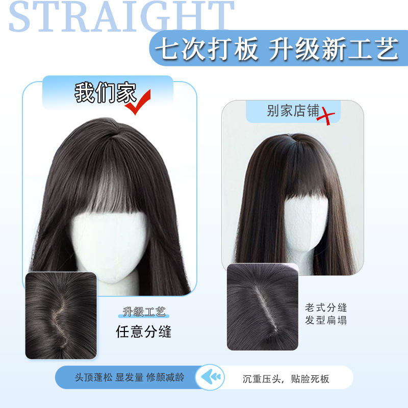ผมยาวตรงพร้อมหน้าม้าปัดข้างทรงผมวิก