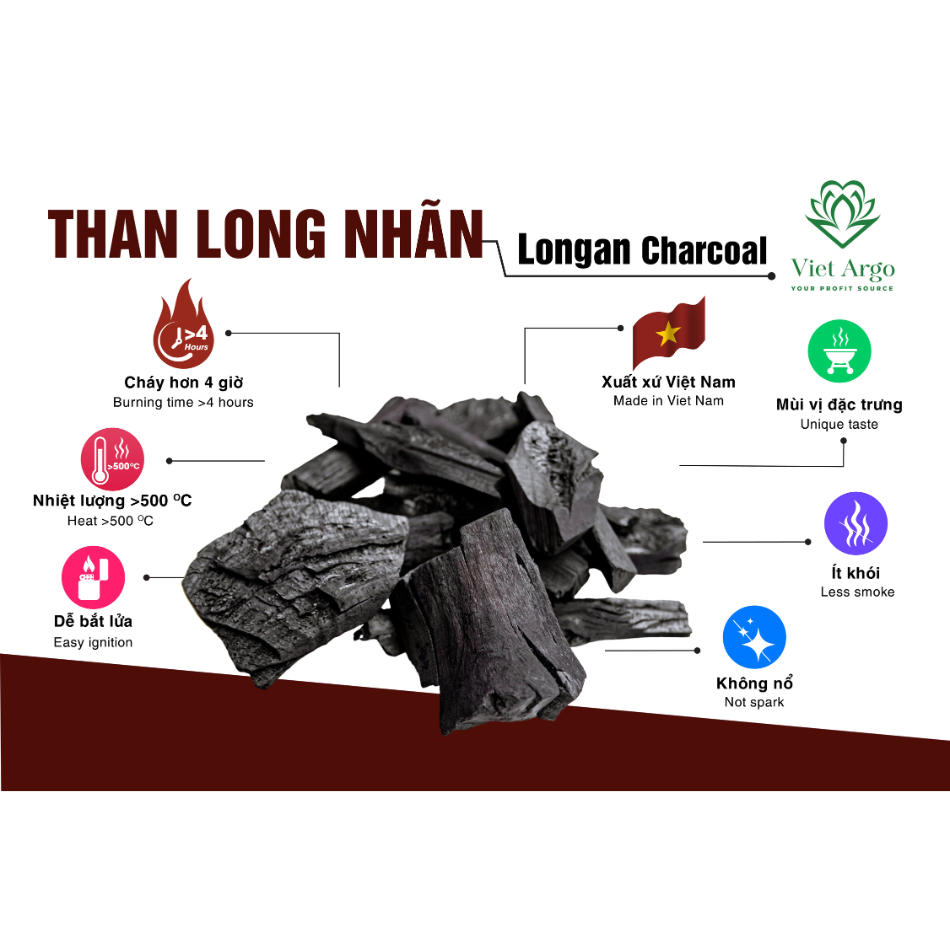 ถ่านลำไยสีดำธรรมชาติย่างบาร์บีคิวความร้อนสูงถ่านชิชามอระกู่
