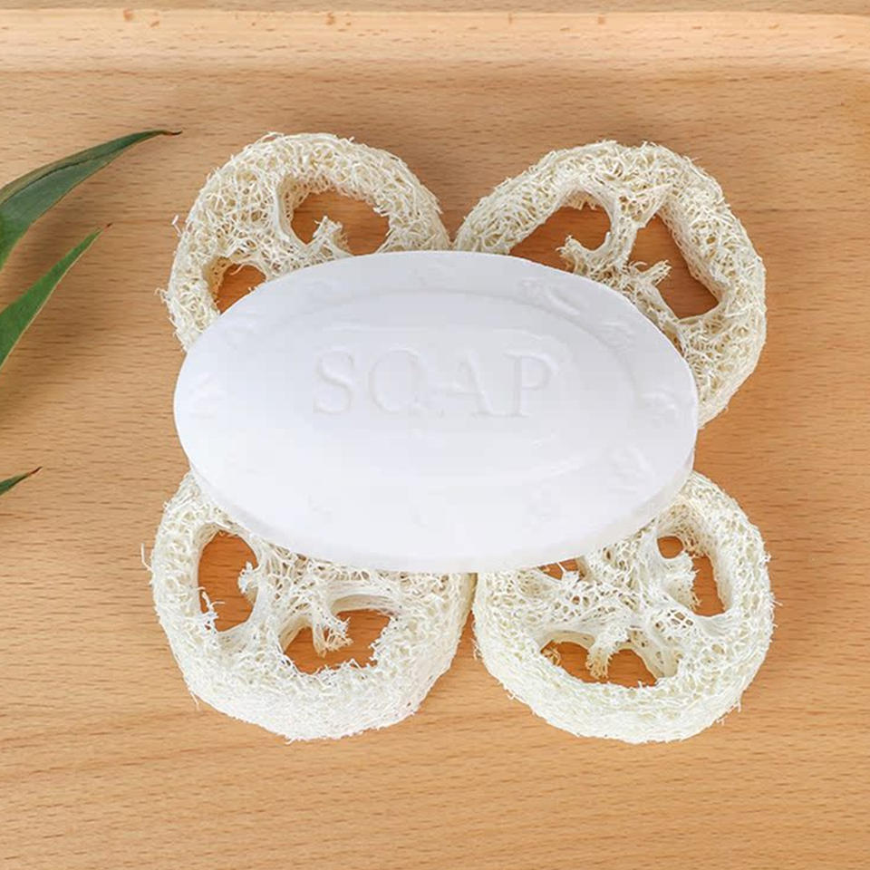 ที่วางสบู่ใยบวบธรรมชาติ พร้อมที่ระบายน้ำ ใยบวบจากพืช ใยบวบหั่นเป็นแผ่น วัสดุทำสบู่แฮนด์เมด แผ่นรองสบู่
