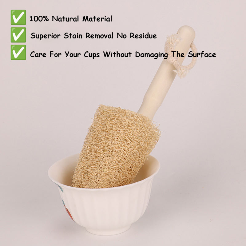 แปรงล้างขวดใยบวบธรรมชาติพร้อมด้ามไม้ แปรงสำหรับล้างจานในครัวและอุปกรณ์อาบน้ำ