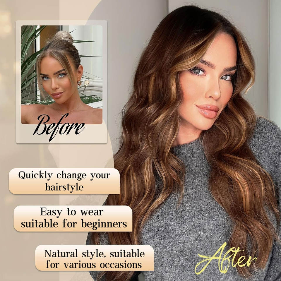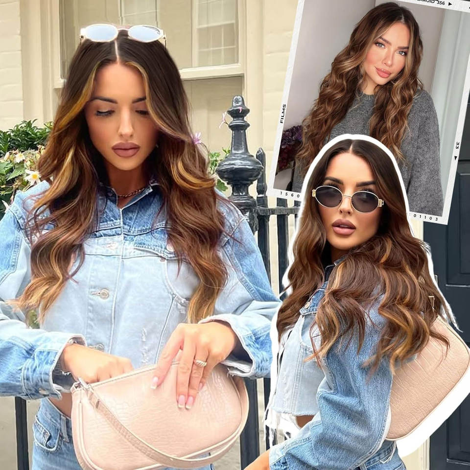 วิกผมหยักศกสีบลอนด์ดูเป็นธรรมชาติเส้นใยสังเคราะห์มีลูกไม้ด้านหน้าสำหรับผู้หญิงผมยาวสำหรับปาร์ตี้ทุกวันสไตล์ไฮไลต์สีน้ำตาล
