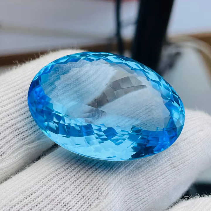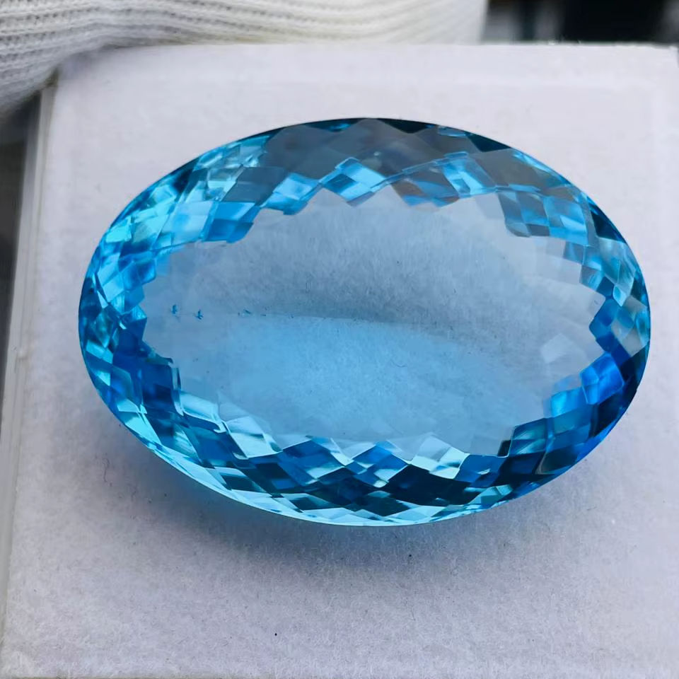 บลูโทแพซทรงวงรีขนาดใหญ่ 99.19 กะรัต คุณภาพเกรด AAA ความเงางามระดับ AAA เหมาะสำหรับการประดับตกแต่ง ราคาถูก