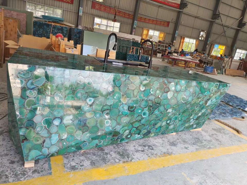 แผ่นหินอ่อนสีน้ำเงินออนิกซ์ธรรมชาติหรูหรา หินอาเกตโปร่งแสง แผ่นหินลูมิสโตน