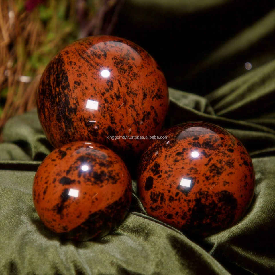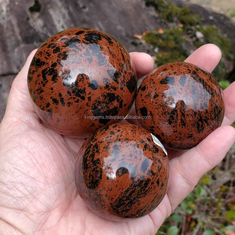 หินออบซิเดียนมะฮอกกานีธรรมชาติขัดเงา แกะสลักทรงกลม สำหรับบำบัดรักษา ฟงชุ่ย ตกแต่งบ้าน