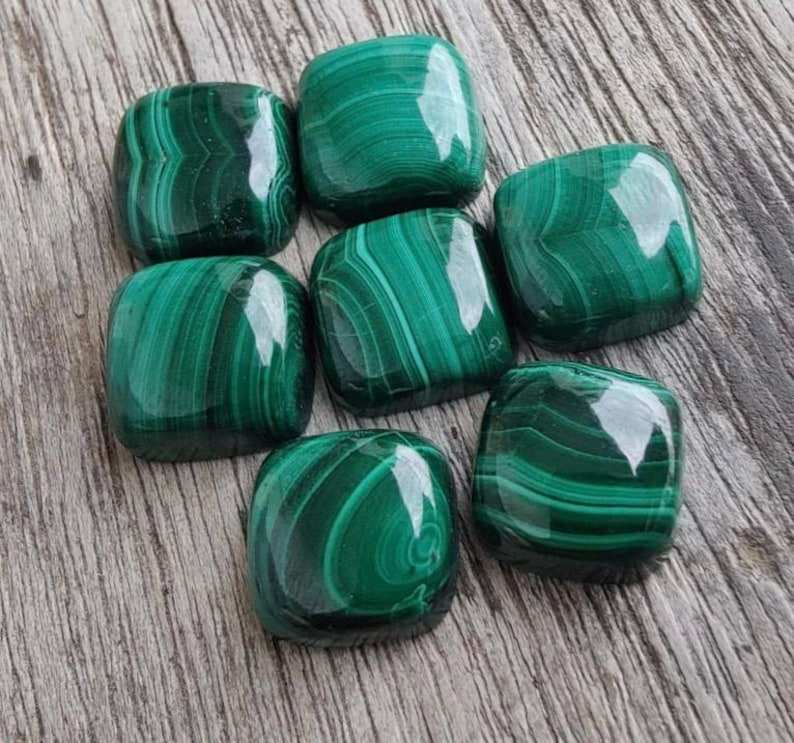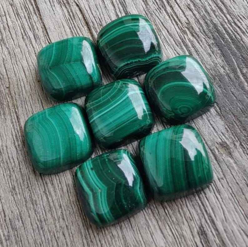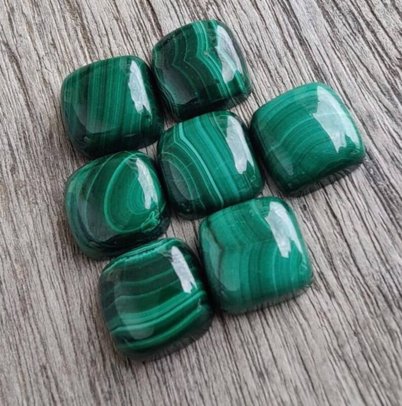 มาลาไคต์ธรรมชาติทรงเหลี่ยมแบบคาโบชอง พลอยคุณภาพสูง ขัดเงา สำหรับทำเครื่องประดับ ขายส่ง