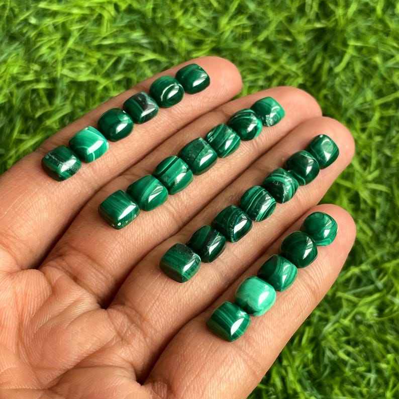 Natural Malachite Cushion Shape Cabochon Loose Gemstone Lot for Jewelry Making