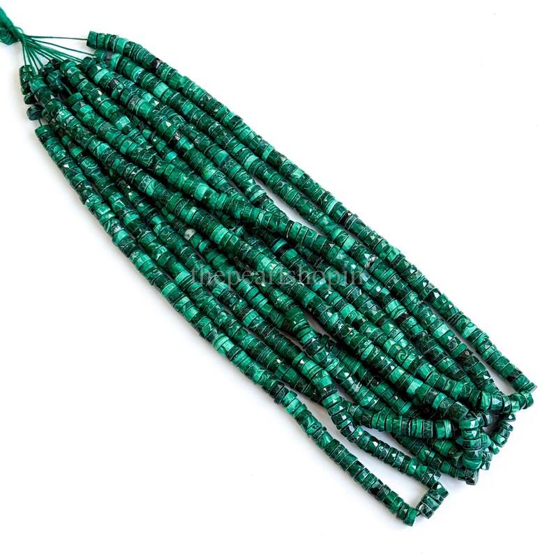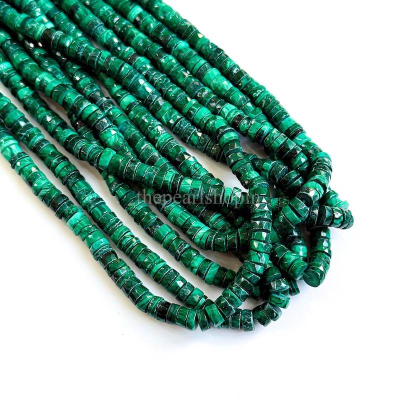 Natural Malachite Faceted Heishi Beads 5-6MM Green Genuine Malachite Gemstone Loose Beads For Jewelry Making 16 Inch Strand