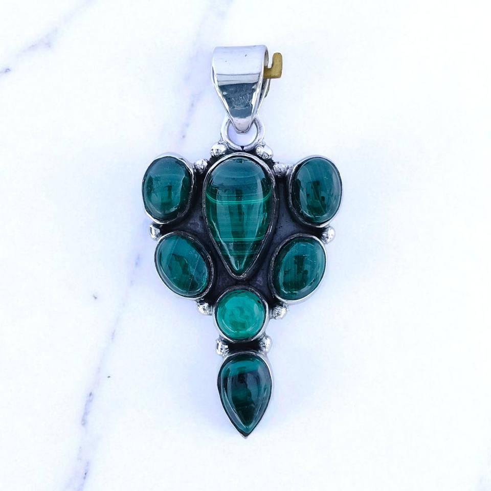 จี้หินมาลาไคต์ธรรมชาติ พร้อมเครื่องประดับเงินแท้ 925