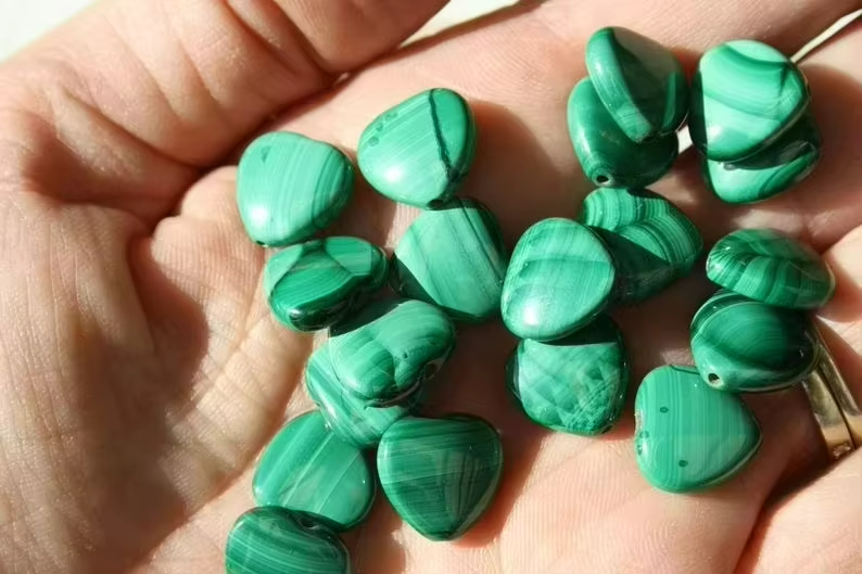 จี้หัวใจมาลาไคต์ธรรมชาติ ทำด้วยมือ คุณภาพสูง ขัดเงา หินพลอยหลวม มีหลายชนิดให้เลือก