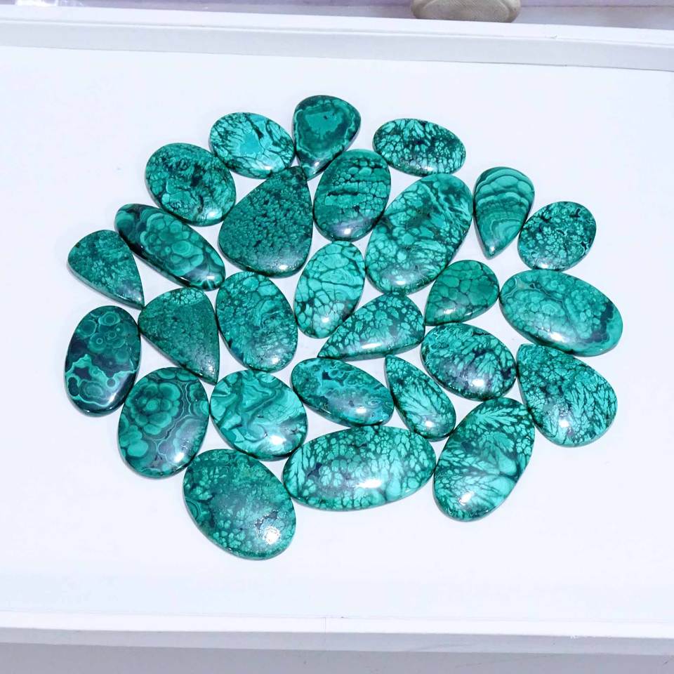 พลอยมาลาไคต์ธรรมชาติแบบหลวม พลอยมาลาไคต์ทรงหลังเบี้ยสวยงาม พลอยมาลาไคต์ทรงหลังเบี้ยแบบหลวมสำหรับทำเครื่องประดับ