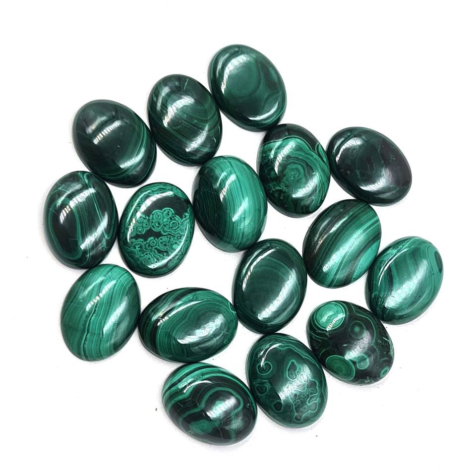 มาลาไคต์ธรรมชาติ ล็อตพลอยรูปไข่สีเขียว คาโบชอง รุ้งเหลือบรุ้ง 100 กะรัต สำหรับทำเครื่องประดับ ผ่านการอบความร้อน