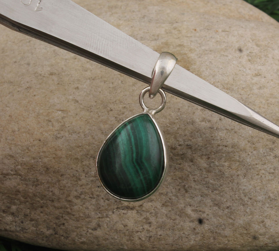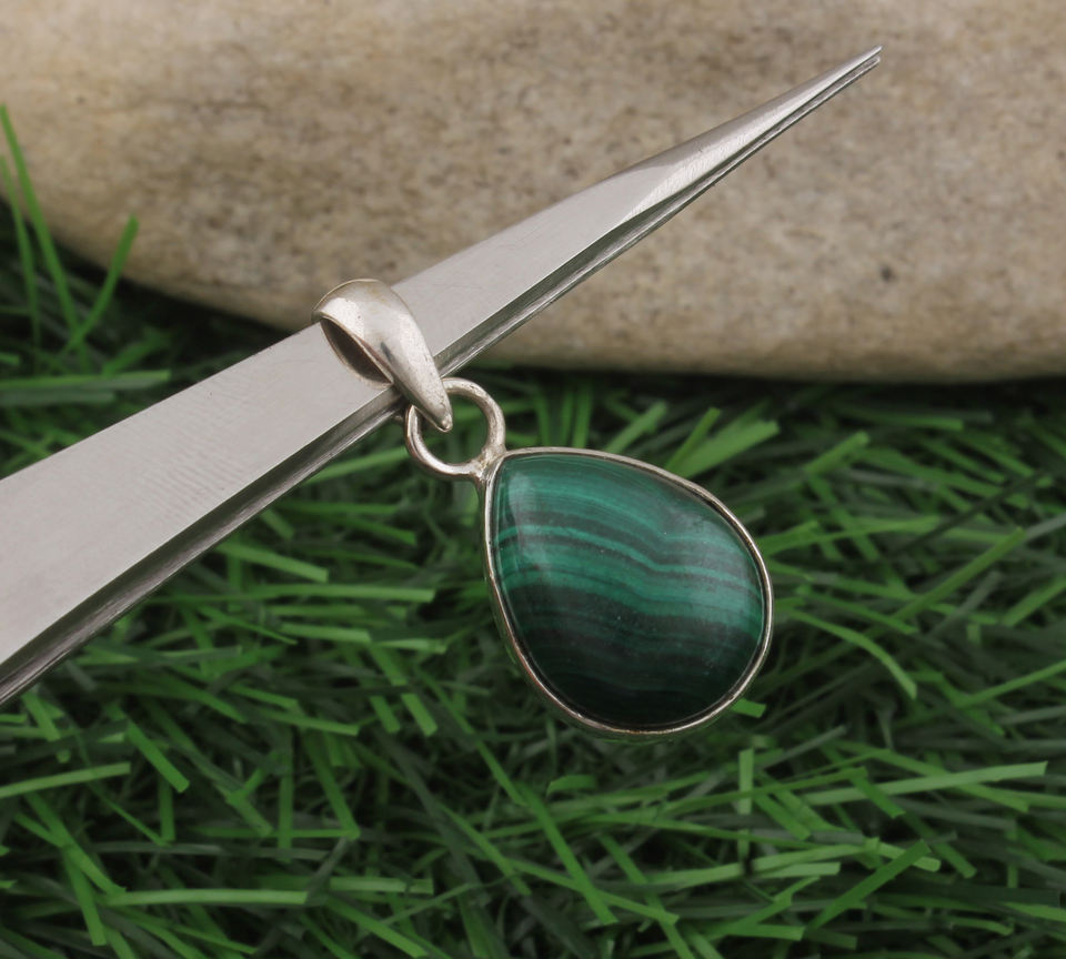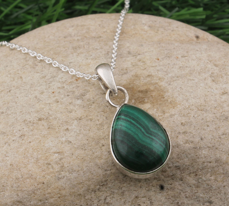 จี้มาลาไคต์ธรรมชาติ เงินแท้ 925 ชุบแพลตตินัม สร้อยคอพลอยทำมือ เครื่องประดับวินเทจ สำหรับทุกเพศ ฉลองครบรอบ