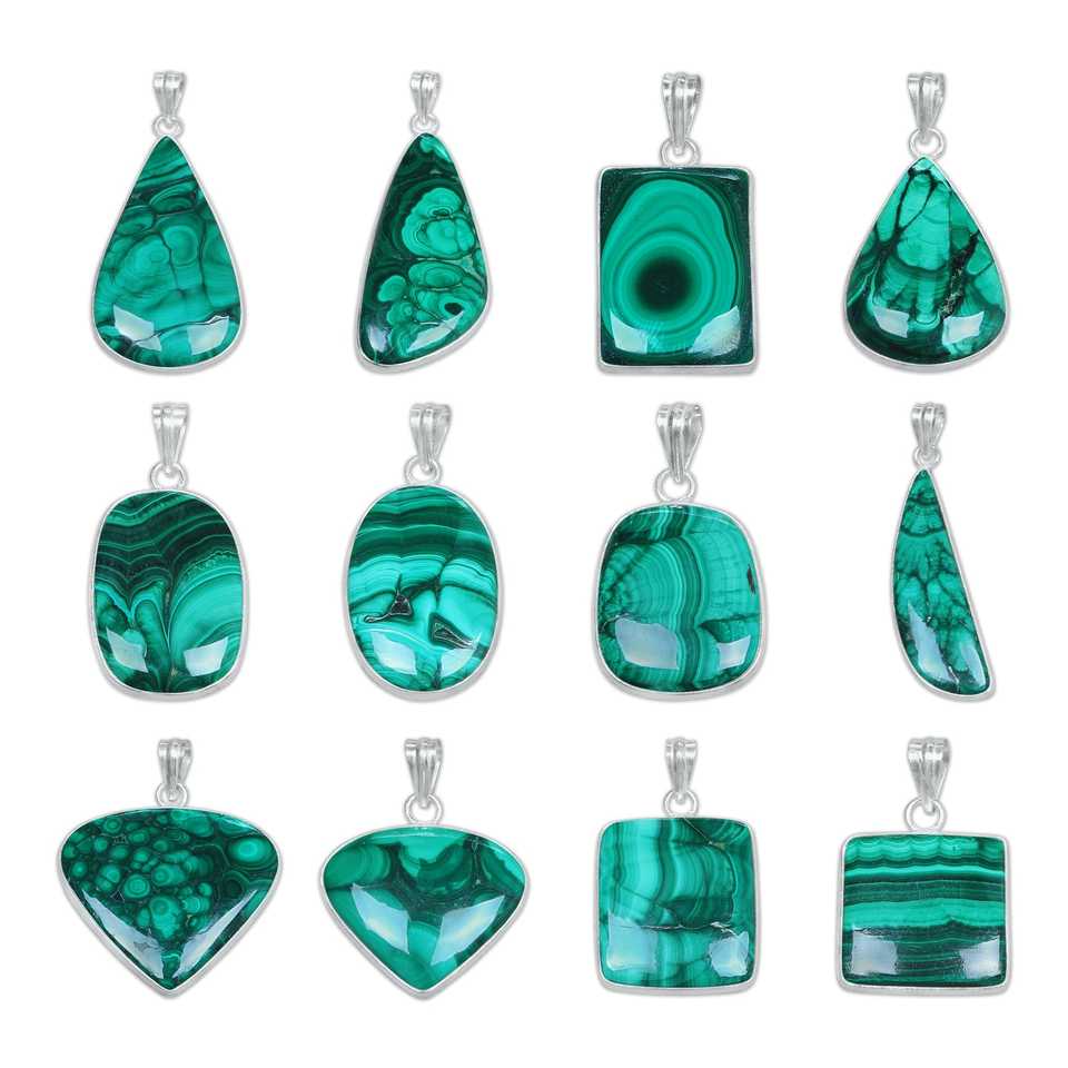 จี้ห้อยคอแฟชั่นวินเทจทำมือสำหรับผู้หญิง ประดับด้วยมาลาไคต์ธรรมชาติทรงหลากหลายแบบ เรียบเนียน ชุบทองบนทองเหลืองเงิน