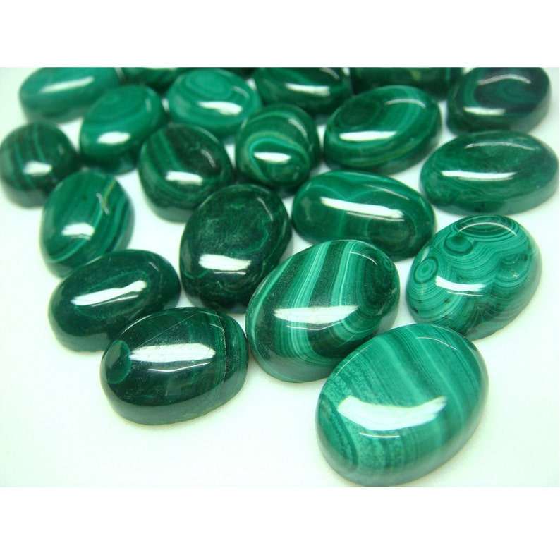 มาลาไคต์ธรรมชาติทรงรีเรียบ คาโบชอง หินพลอยคุณภาพสูงสำหรับทำเครื่องประดับ จำนวนมาก