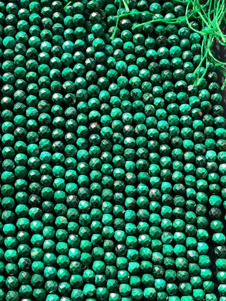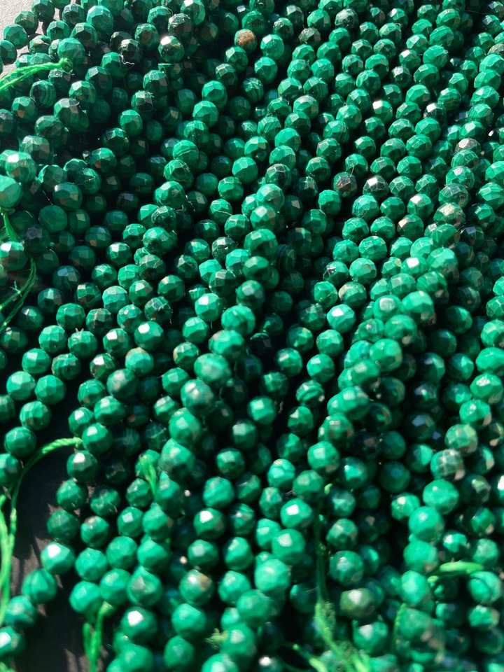 ลูกปัดหินมาลาไคต์ธรรมชาติทรงกลมเหลี่ยมเพชรพลอย ลูกปัดพลอยสีเขียวสวยงาม ความยาว 15.5 นิ้ว สำหรับทำเครื่องประดับ