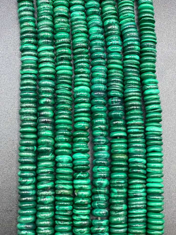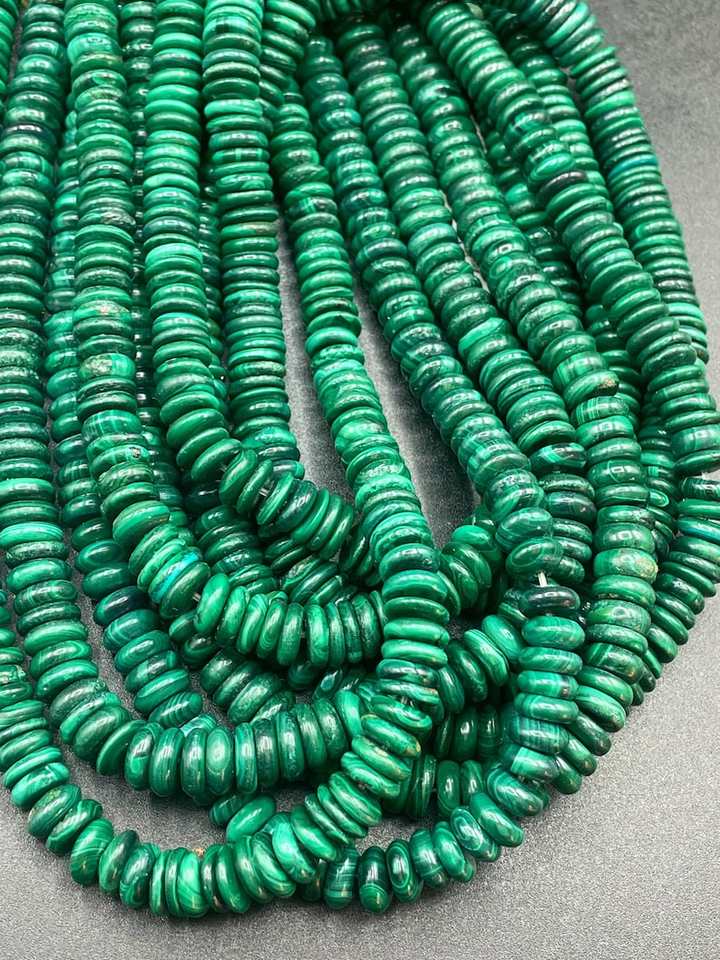 ลูกปัดหินมาลาไคต์ธรรมชาติทรงเฮชิ สีเขียวสวยงาม คุณภาพสูง สำหรับทำเครื่องประดับ