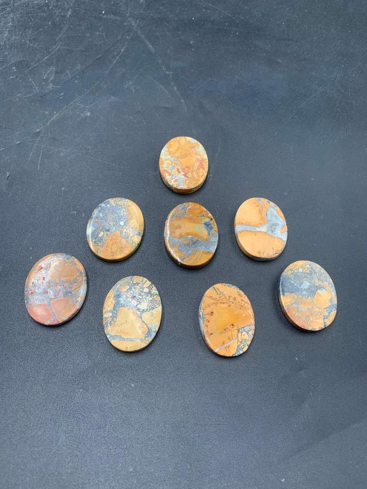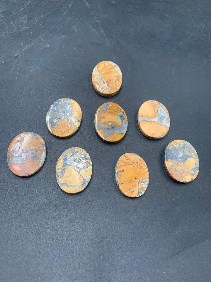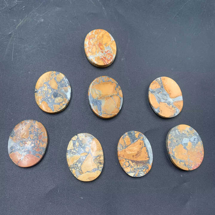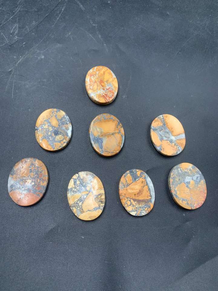 หินแจสเปอร์มาลิกาโนธรรมชาติทรงแบนขัดเงา สำหรับบำบัดรักษา พร้อมลวดลายสีดำและสีขาว ขนาด 35 x 45 x 7 มม.