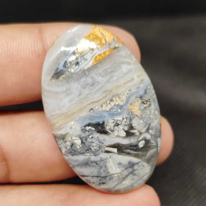 Udgems หินธรรมชาติ maligano Jasper หินบำบัดลวดลายที่เป็นเอกลักษณ์สีขาวและสีเหลืองสำหรับการทำเครื่องประดับ