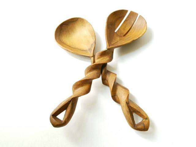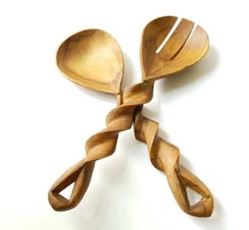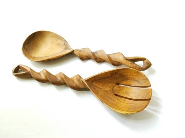Natural Mango Hand Carved Wooden Salad Serving Spoon Fork Set Spiral Handle Utensils Kitchenware Decorative