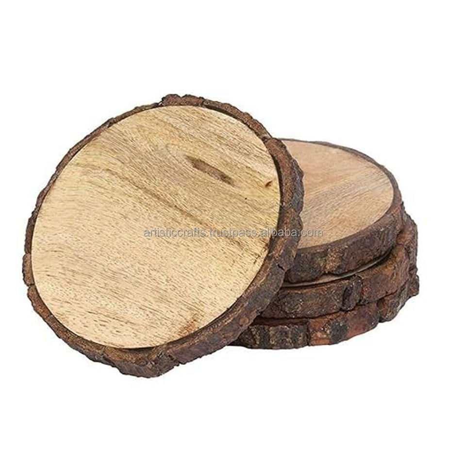 ที่รองแก้วทรงกลมเปลือกไม้มะม่วงธรรมชาติแผ่นไม้และแผ่นรองจานผลิตภัณฑ์จากธรรมชาติระดับพรีเมี่ยม