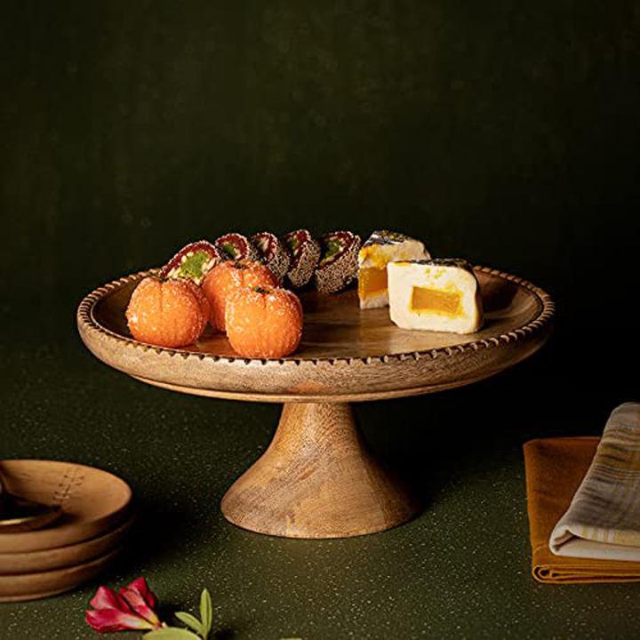 ขาตั้งเค้กไม้มะม่วงทรงกลม งานแฮนด์เมด ปลอดภัยสำหรับอาหาร ใช้กับเครื่องล้างจานได้ สำหรับวางขนม โชว์อาหาร บนโต๊ะอาหาร ผลิตโดย SANIYA HANDICRAFT