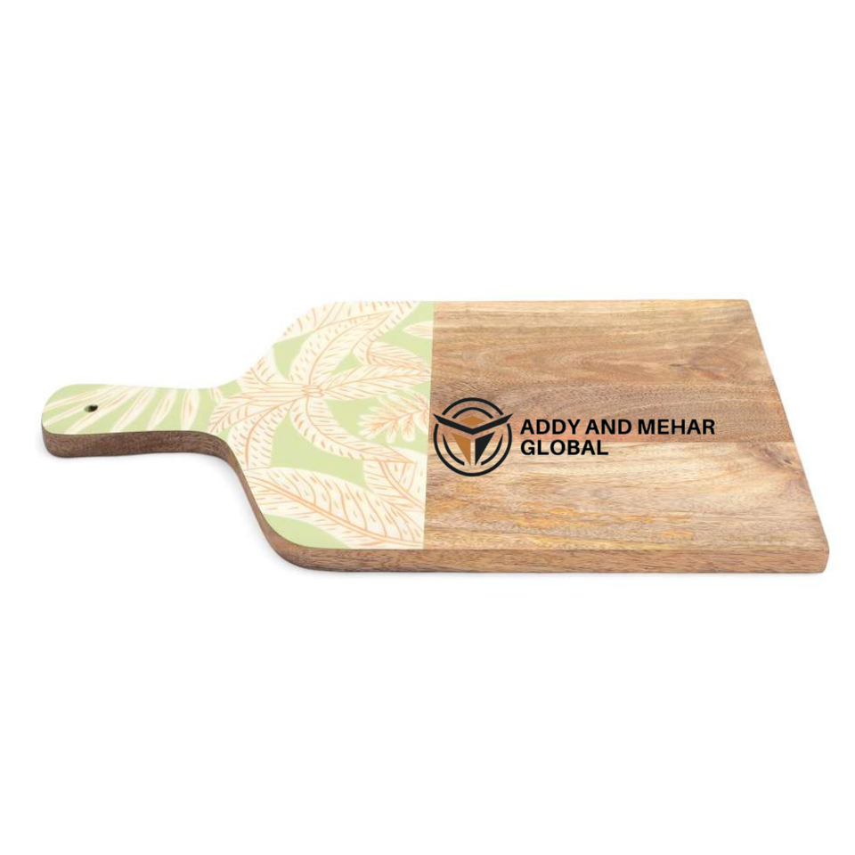 กระดานเสิร์ฟไม้มะม่วงธรรมชาติพร้อมดอกไม้เคลือบสีเขียวตกแต่งห้องครัวหรูหรา