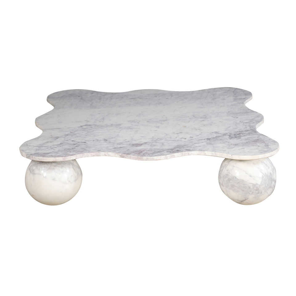 Natural Marble Modern Sculptural Coffee Table with Artistic Curved Top Round Ball Legs Luxury Living Room Furniture ORRIS LIVING