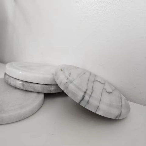 แผ่นรองแก้วหินอ่อนธรรมชาติ เป็นมิตรกับสิ่งแวดล้อม ทนทาน ล้างทำความสะอาดได้ ดีไซน์เรียบง่ายทรงสี่เหลี่ยม สำหรับเสิร์ฟชา กาแฟ